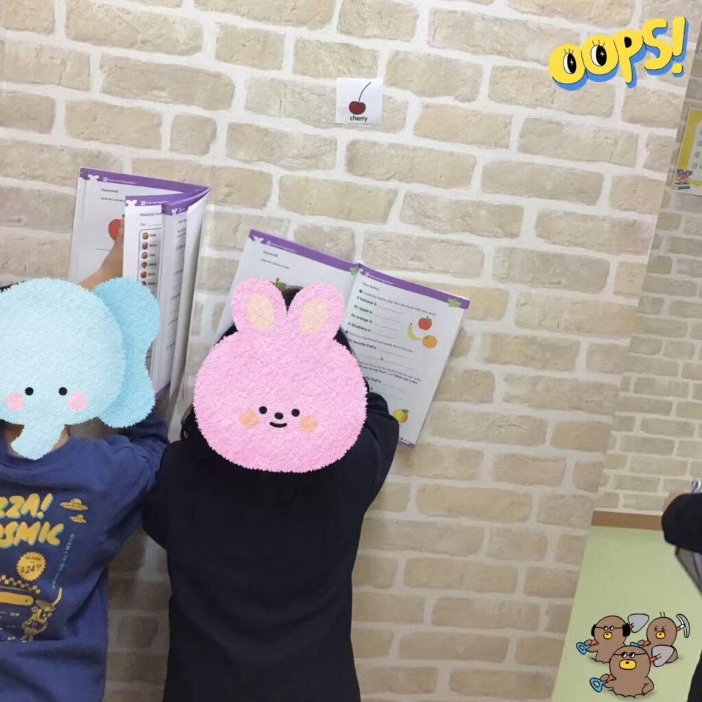 今週教室の壁には、たくさんのフルーツのステッカーを貼りました🍉🍇